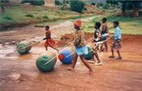 o their heads they use sticks to move the waterbins forward. You could